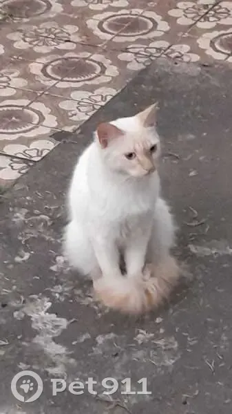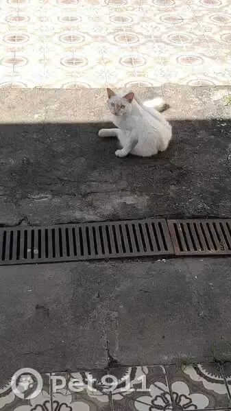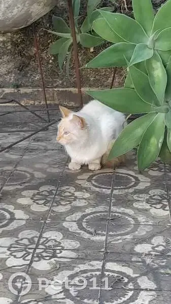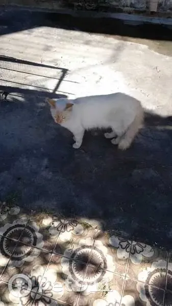 GATO BRANCO ”ele apareceu aqui em casa no mes de janeiro 2026, e após um mes, minha esposa começou a deixar ração e água para ele e assim ele tem ficado bastante no fundo do quintal, onde nosso cachorro não vai, pois tem uma porteira. Mas agora ele quer entrar em casa e o cachorro fica muito excitado e late muito. Procuramos o dono de preferencia, mas caso não tenha nenhum dono procurando, ache um tutor”