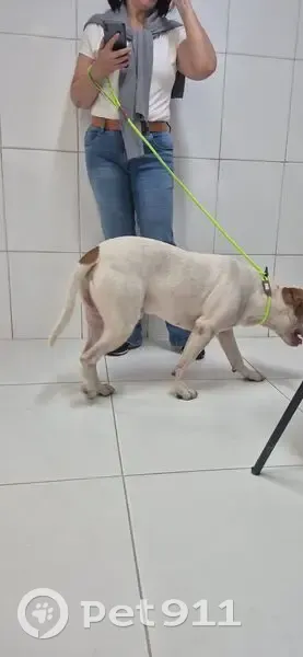 Pitbull (cor branca com manchas caramelo) Macho Não Castrado Está saudável, muito assustado, e arisco. Encontrado sozinho em frenre ao mercado St Marche na Vila Mascote (zona sul de SP)