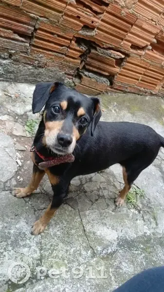 Esse bebê apareceu aqui e permanece aqui na viela, está perdido pelo visto. Tem coleira: gravata borboleta, esta bem cuidado e gordinho. Por favor, gostaríamos de encontrar os donos.