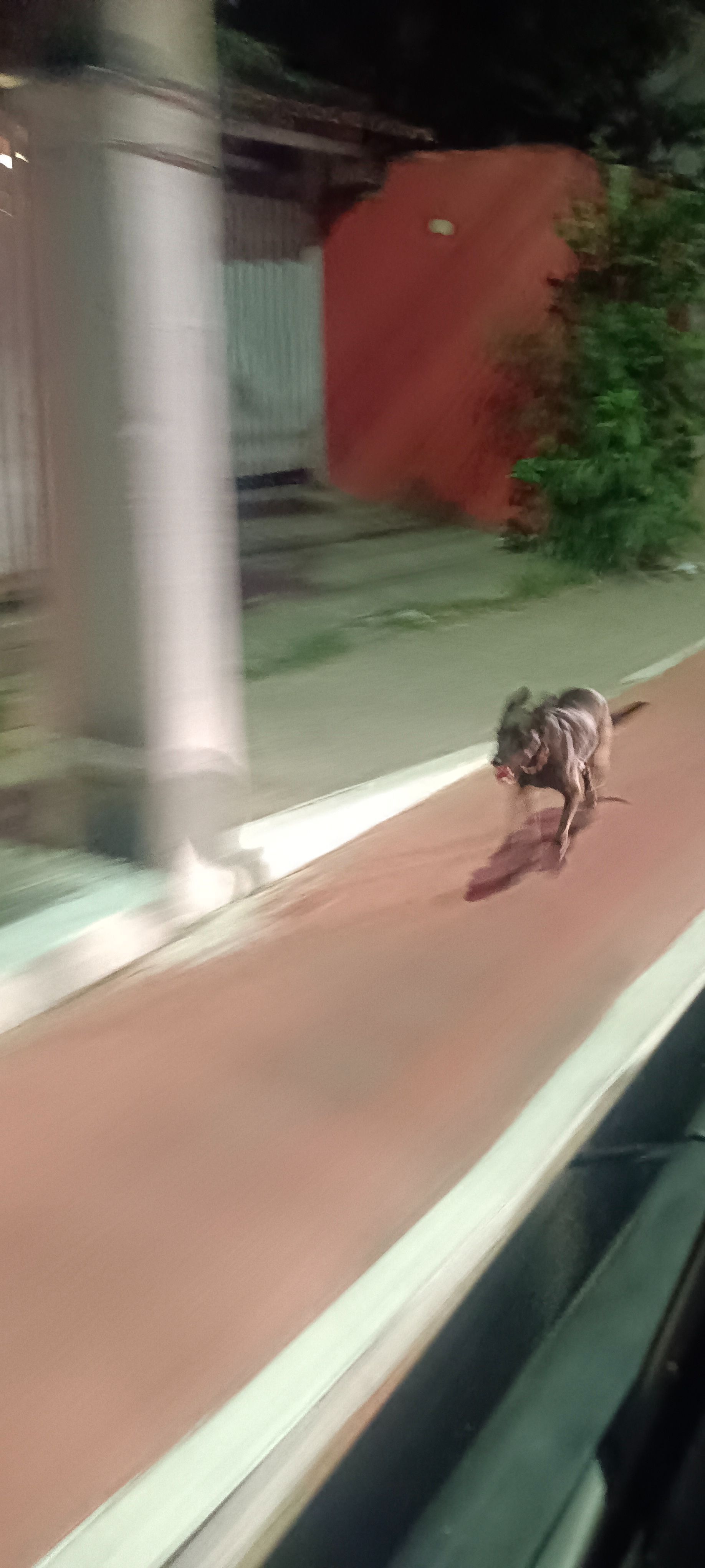 Cachorrinho Preto com colar de conchinhas, desesperado por causa dos fotos de artificio. Dava pra ver que é de casa pois estava desnorteado no meio da avenida. Tentamos pegá-lo (estava correndo sentido manguinhos) dps mudou o sentido para centro. Estava completamente confuso e cansado. Espero que alguém encontre e consiga pegá-lo e que os donos o rencontre bem.
