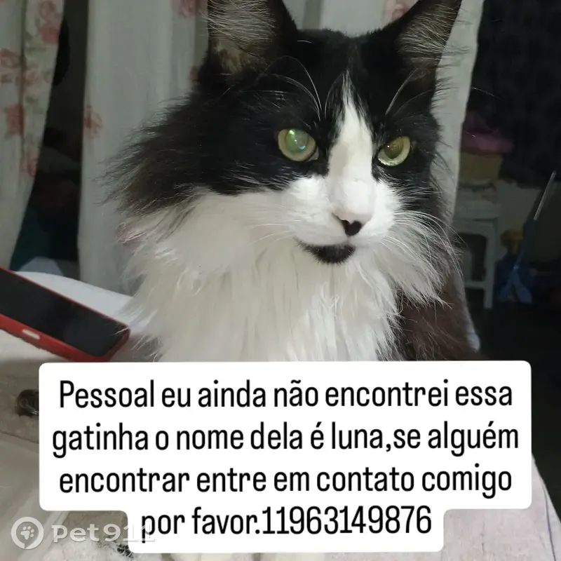 Frajola, bem peluda desapareceu durante a madrugada, ela não saía de casa mas de repente.