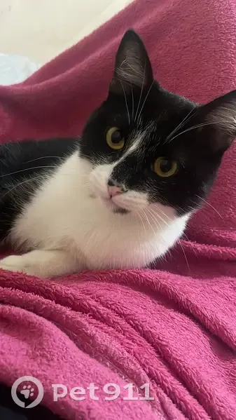 Pelagem preta e branca. Olhos amarelos. Assustado com barulhos e pessoas diferentes. Nunca teve acesso a rua, conseguiu rasgar a tela de casa e saiu. Tenho medo pois por ele nunca ter tido acesso, ele pode ter se perdido ou alguém o pegou.