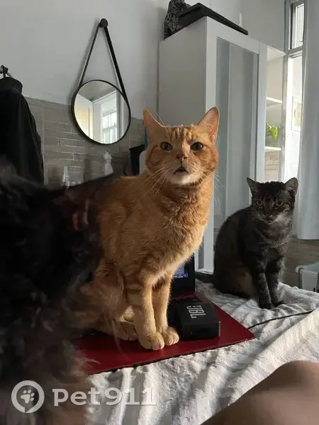 Familto é um gato magro, esguio, adulto, castrado de pelo curto e laranja, rajado, com desenhos bem marcados pelo corpo. Tem a boquinha preta e os olhos verdes. O rabo é listradinho.