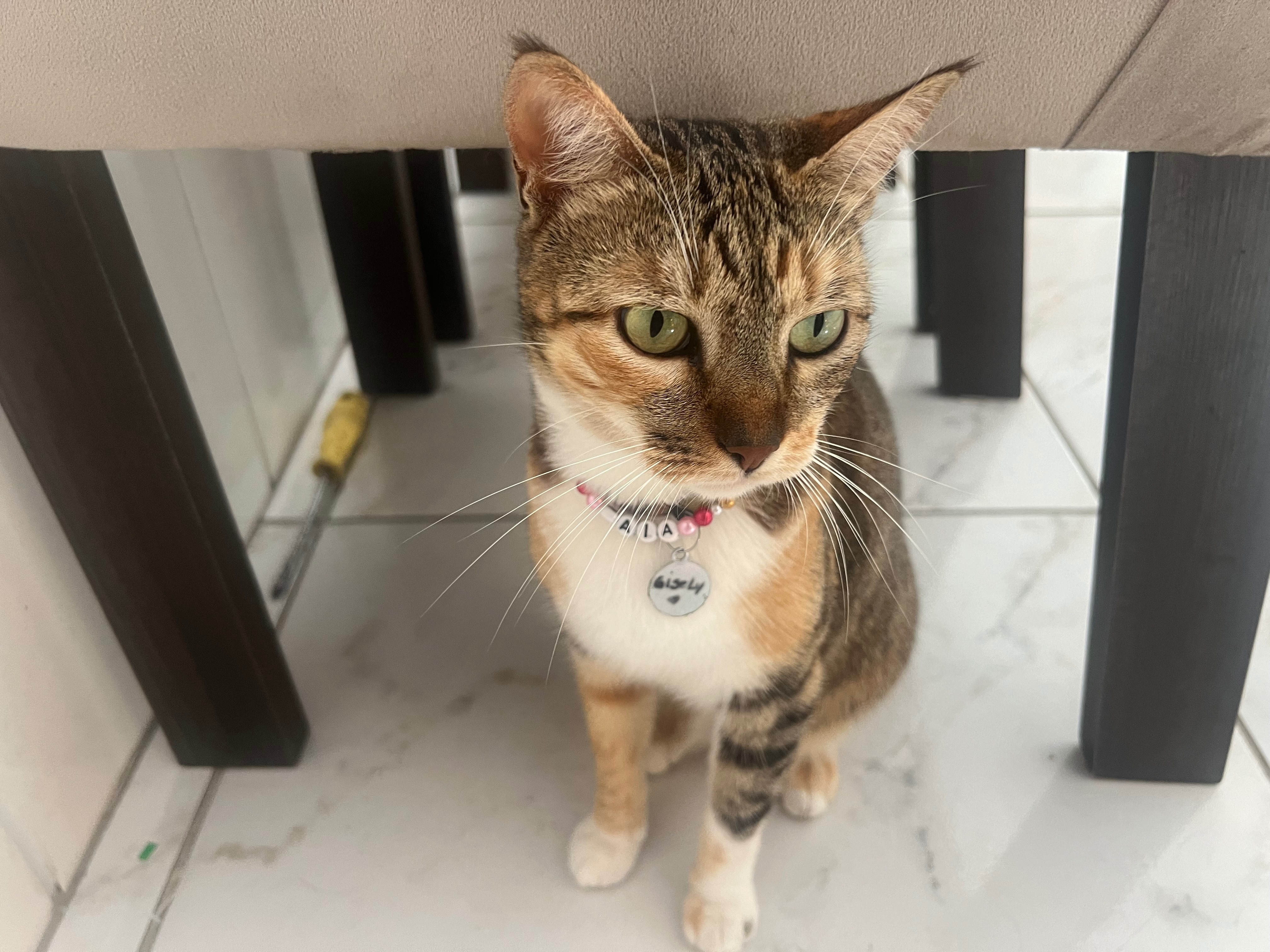 Nala é castrada, atende também se chamar por Gisely. Está com coleira de identificação com nome Nala e desapareceu nas proximidades do supermercado Vitória