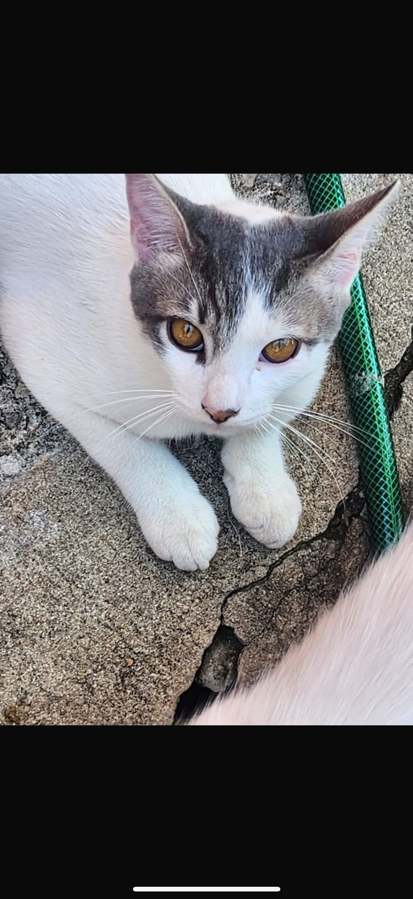 Ele cortou a tela e pulou o muro, mas não conseguiu pular de volta. Aí passaram alguns cachorros na rua e ele saiu correndo. Ele é todo branquinho, com manchas cinza na carinha, próximo às patas traseiras e o rabinho é cinza com a ponta branca. é castrado e muito bonzinho. Estamos sofrendo demais sem ele. Demais mesmo.