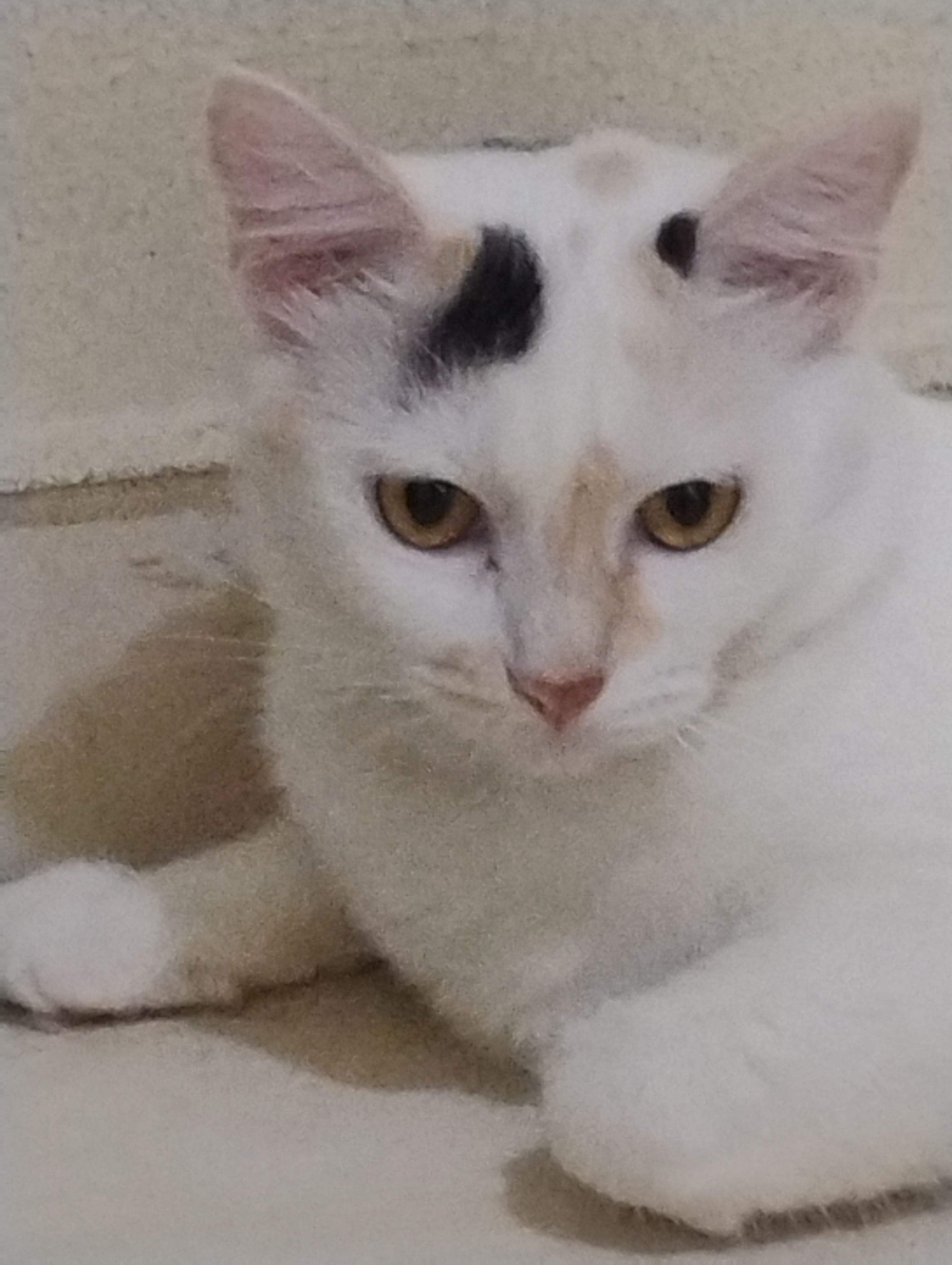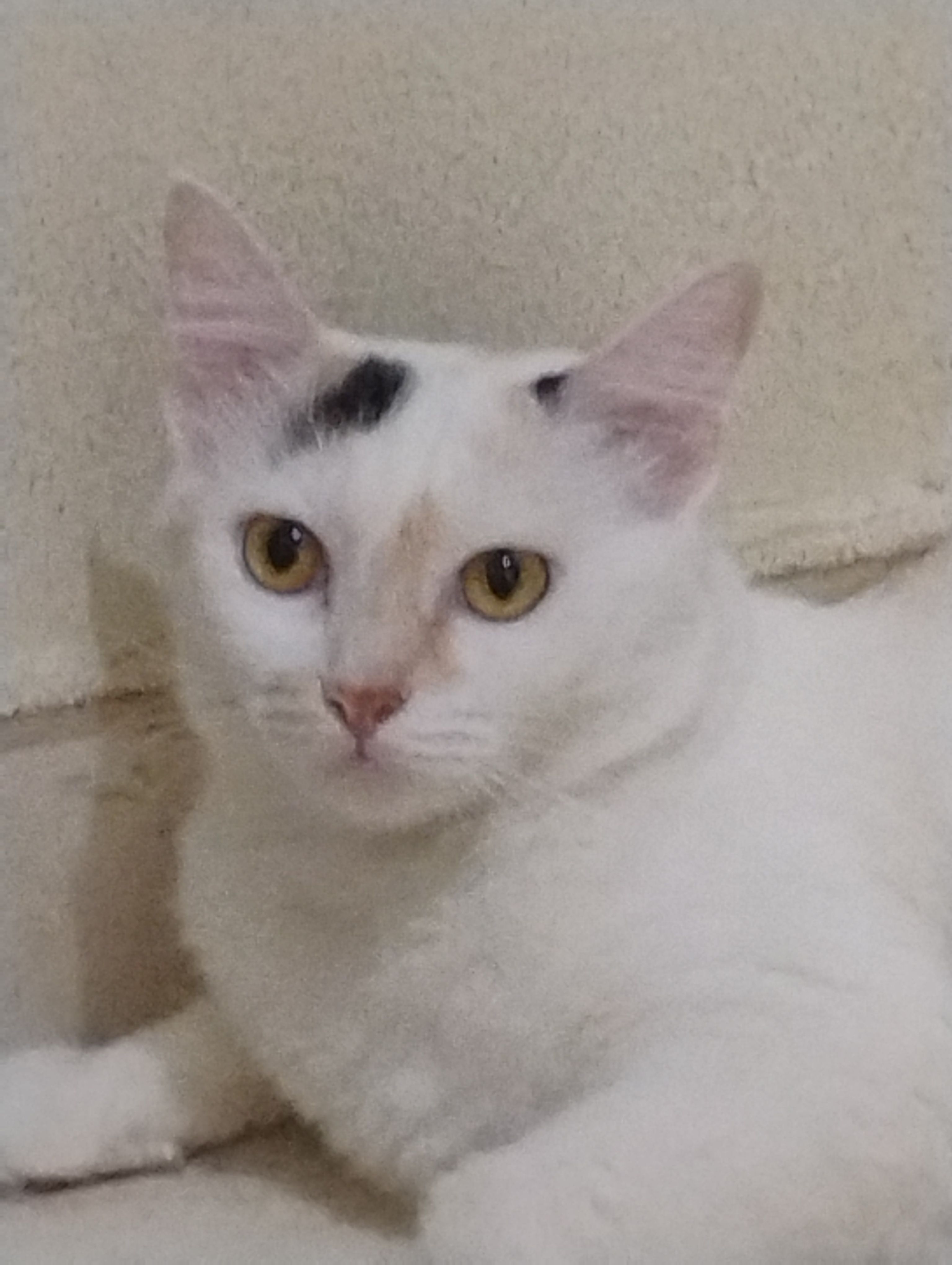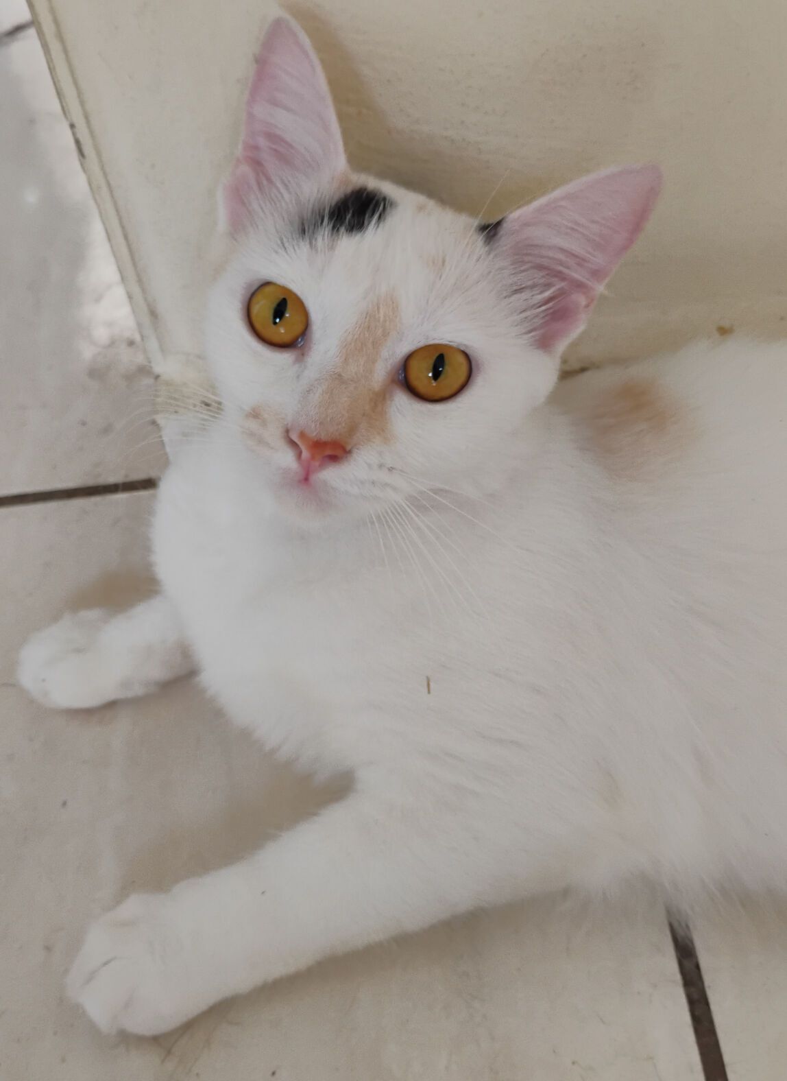 Branca com manchas pretas e marrom rabo grosso atende por safira pulou o murro nunca fez isso