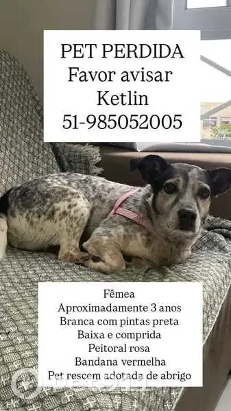 Quando ela fugiu, estava exatamente como na primeira foto. Recém havia voltado da pet. Ela se assustou com as bombas que estouraram próximo do condomínio e pulou a janela do terceiro andar, conseguiu escapar porque um carro entrou bem na hora e ela aproveitou o portão aberto. Possui pelo branco com manchadinhos pretos, muito dócil e tranquila.