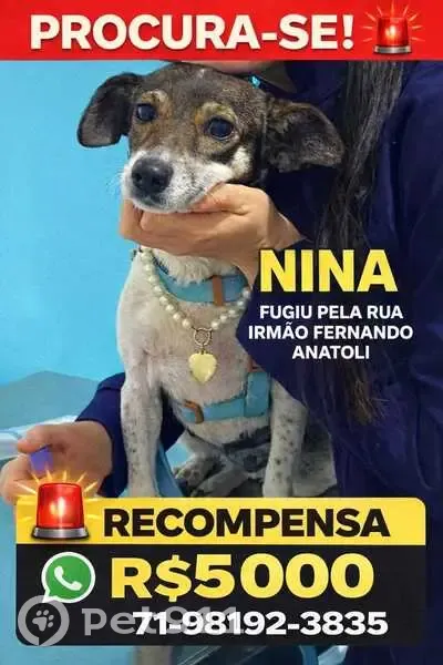 Nina é marrom e branca, muito dócil e carinhosa. Se perdeu no bairro Mal. Rondon, em Canoas-RS, próximo à rua Irmão Fernando Anatoli. Oferecemos recompensa. Por favor, nos ajude a encontrá-la. Contato também por WhatsApp 71-992401853.