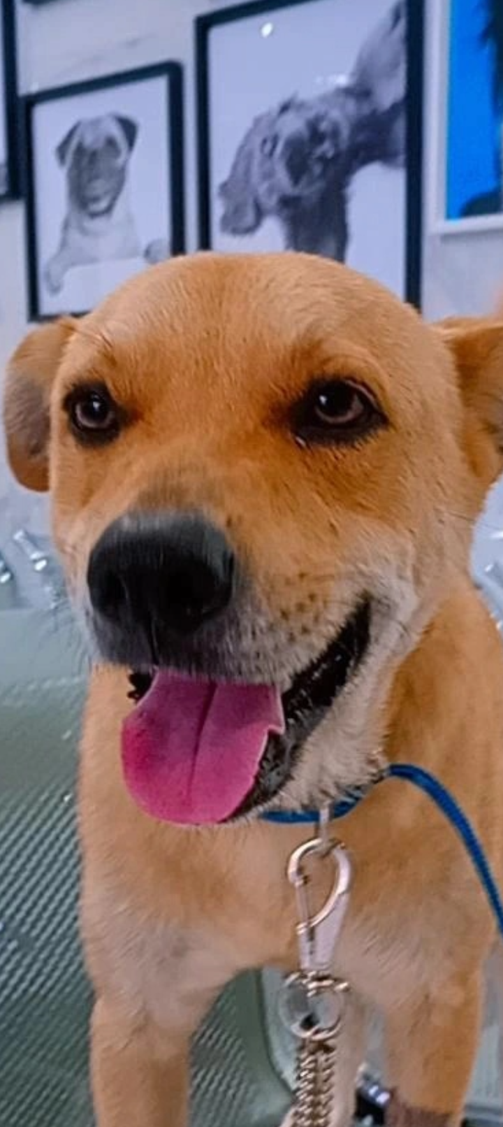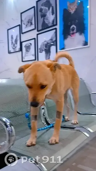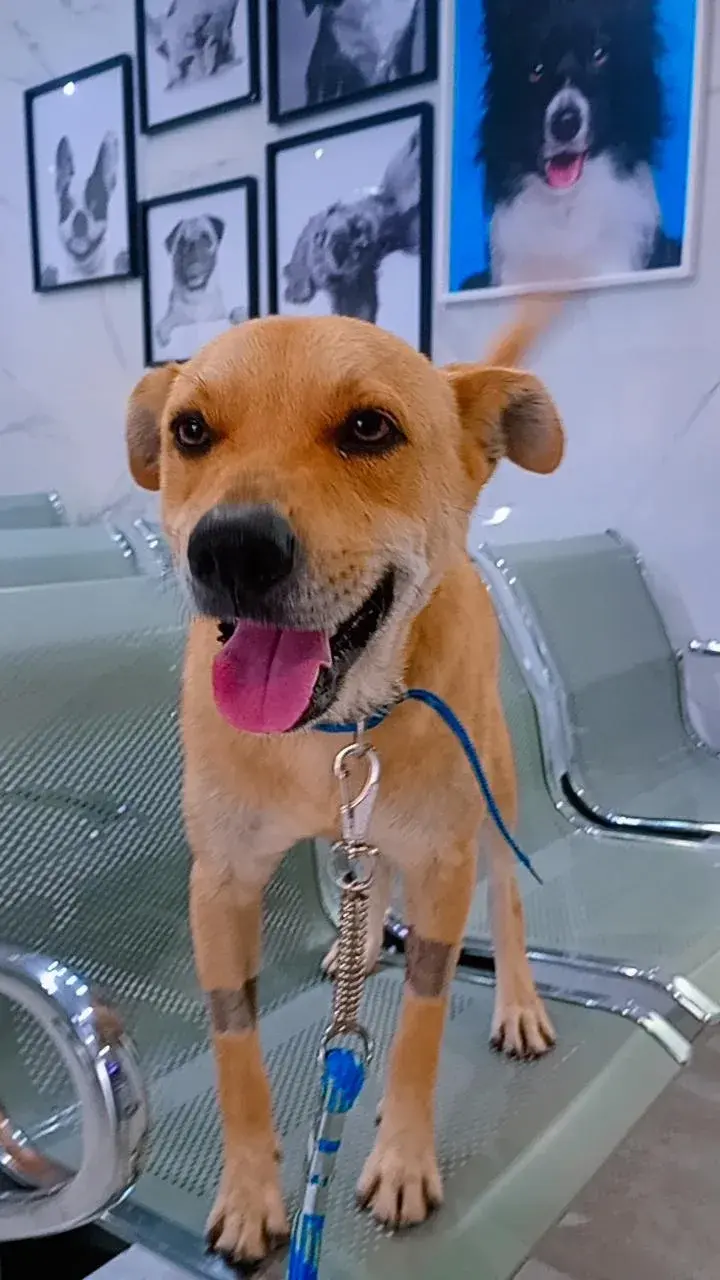 Cachorro de porte grande cor caramelo,esta em tratamento as perninhas da frente estão raspadas por conta da quimioterapia,esta magro a barriga também esta raspada