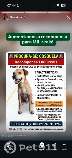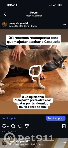 CARAMELO, tem marcas de dormir na rua ( escuras nas patinhas - olhar foto), rabo é um pouco mais preto no final. Tem muito medo na rua, atrair com comida e fazer contato por favor!