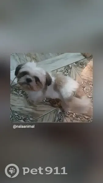 Raça shitzu porte pequeno, cor branca com caramelo, nas orelhas é cor branca com alguns fios pretos, ele é muito dócil. Ele fugiu de casa no dia 03/03/26 na rua onze de dezembro vila Leonina,próximo a av Raja Gabaglia.