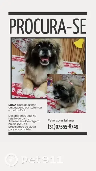 Ela é cor mesclada focinho preto com manchas marrom o corpo e marro com bege , porte pequeno